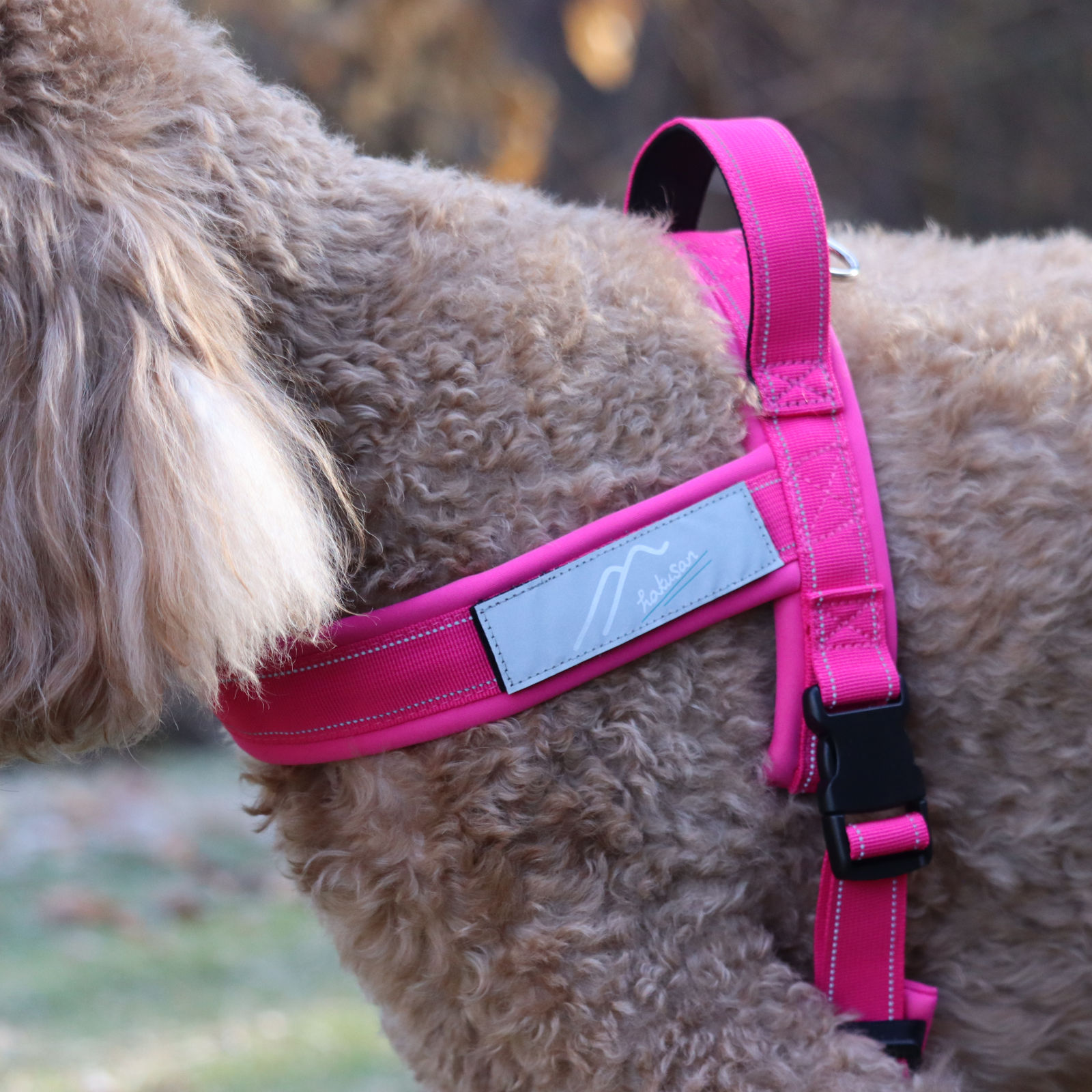 - The well-designed, functional T-shaped body makes it easy to put on and take off the harness, assuring a quick one-touch fit while the soft and supple, body-friendly neoprene padding provides a comfortable wearing experience.